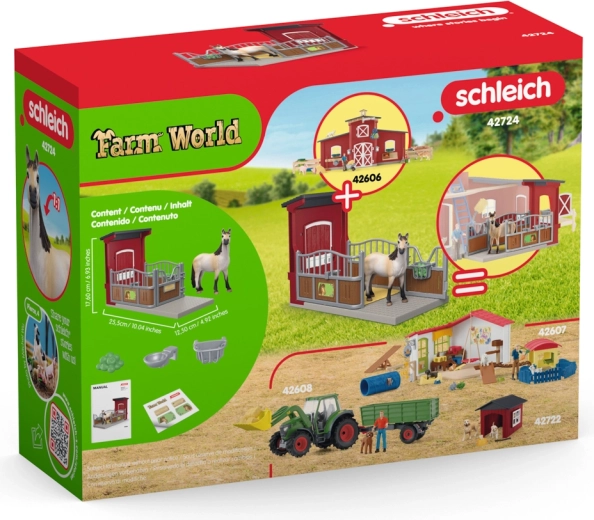 Zestaw jest idealny do rozwijania wyobraźni i małej motoryki. Wyróżnia się szczegółowym wykonaniem, realistycznymi teksturami i odporną konstrukcją do codziennej zabawy. Można go łączyć z dużą farmą (42606) oraz dużą stajnią (42605) Schleich, aby stworzyć jeszcze większy świat zabawy.