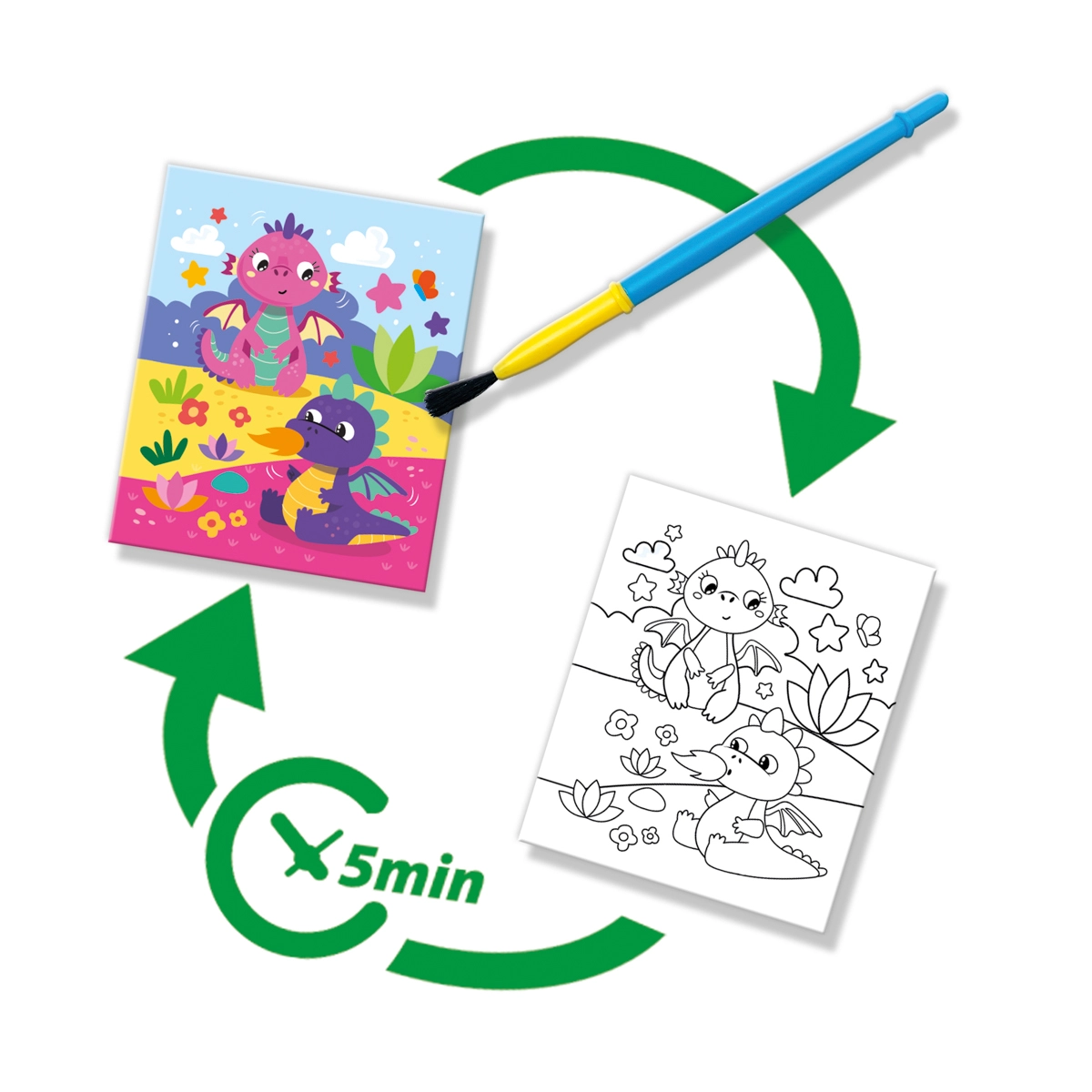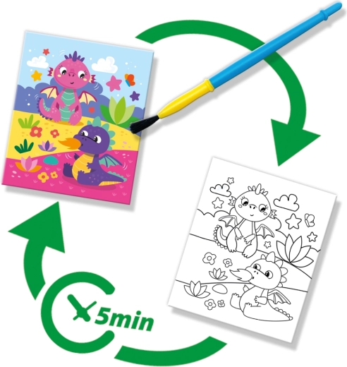 Idealny w podróży, w restauracji i w domu. Pędzelek wodny z cienką końcówką zapewnia precyzyjne pociągnięcia, które wspierają małą motorykę, koncentrację i kreatywne wyrażanie. Fantastyczne motywy bawią dzieci i naturalnie rozwijają ich wyobraźnię.