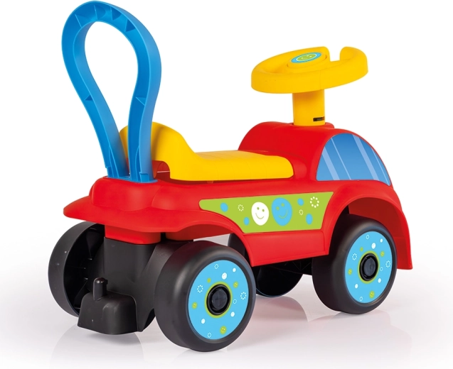 Jeździk auto – czerwony to doskonały wybór dla małych, początkujących kierowców. Dzieci mogą wygodnie siedzieć i odpychać się nóżkami, dzięki czemu naturalnie rozwijają motorykę dużą, równowagę i pewność ruchu. Tylny uchwyt zapewnia wsparcie przy pierwszych krokach oraz ułatwia rodzicom przenoszenie czy podpychanie.