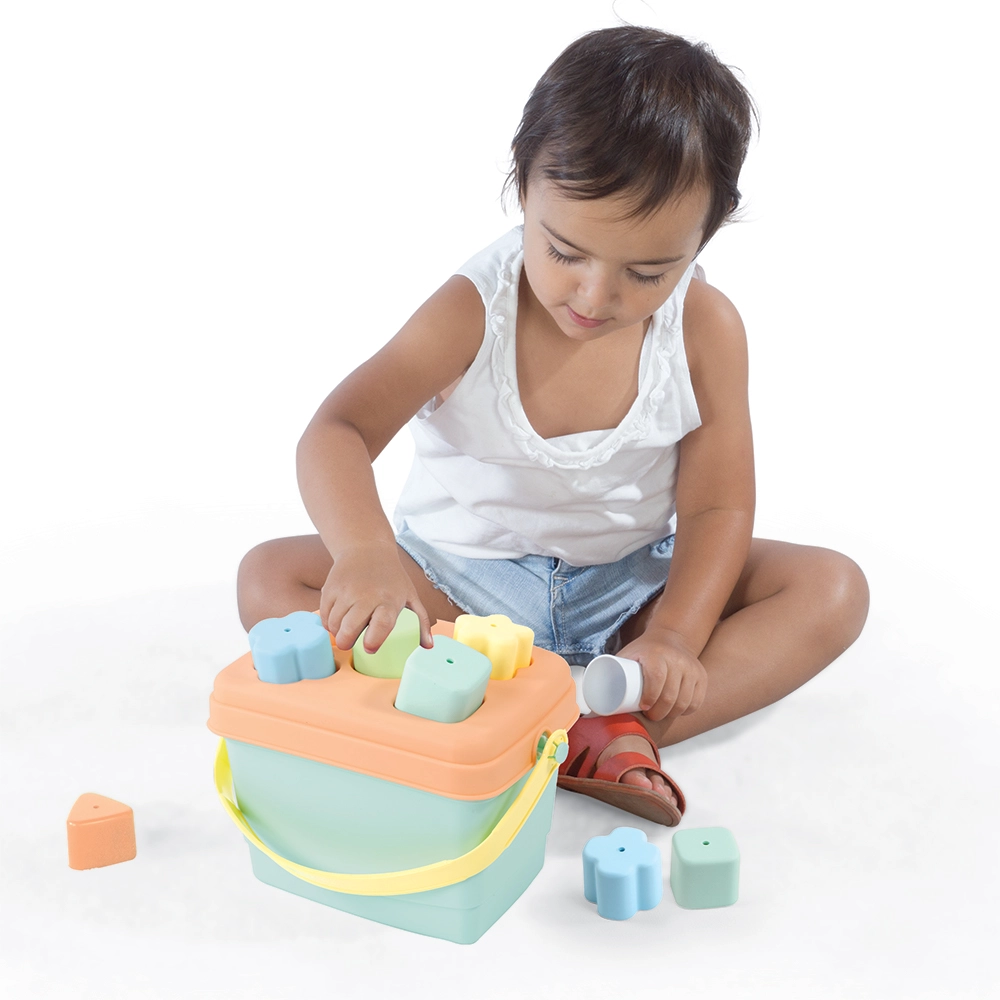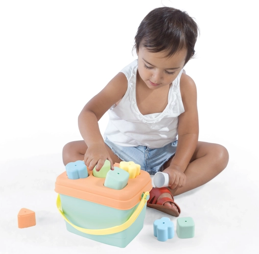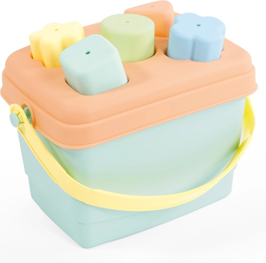 Dzieci wrzucają kształty do odpowiednich otworów, ćwicząc motorykę małą, cierpliwość i logiczne myślenie. Praktyczne ucho ułatwia przenoszenie, a wszystkie elementy można po zabawie schować z powrotem do wiaderka – porządek i wszystko zawsze pod ręką.