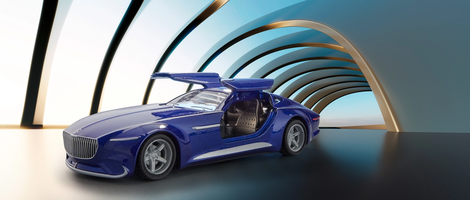Precyzyjnie odwzorowana karoseria, wyrazisty grill i dopracowane linie nadają luksusowy wygląd konceptowi MERCEDES‑MAYBACH w skali 1:50.