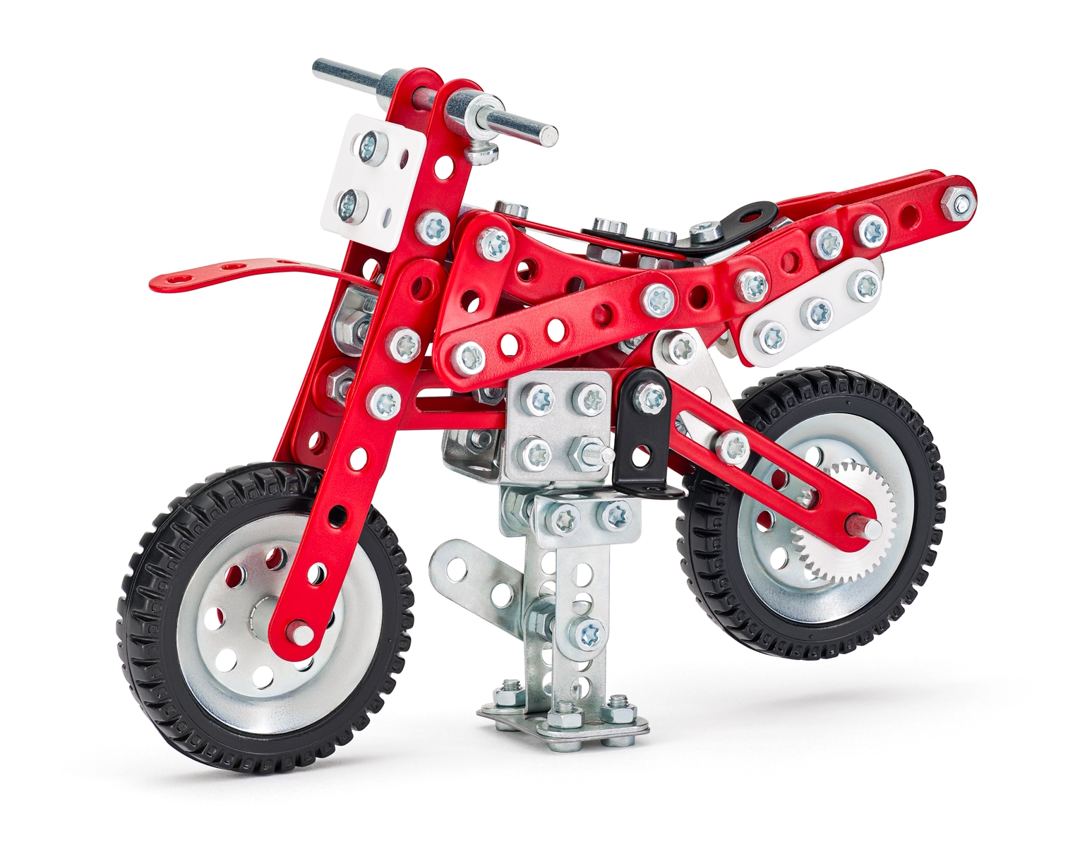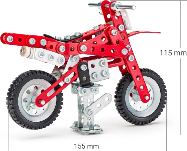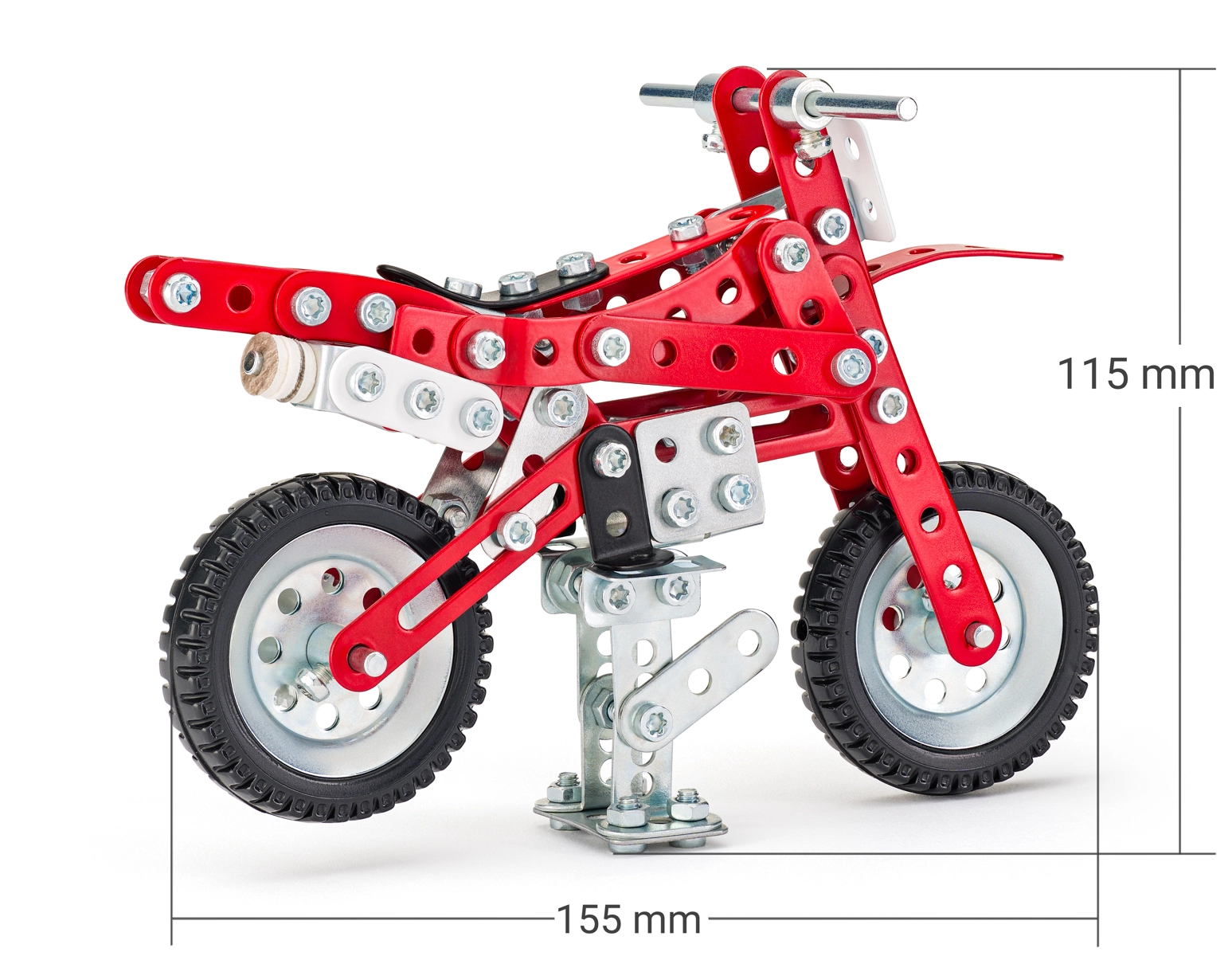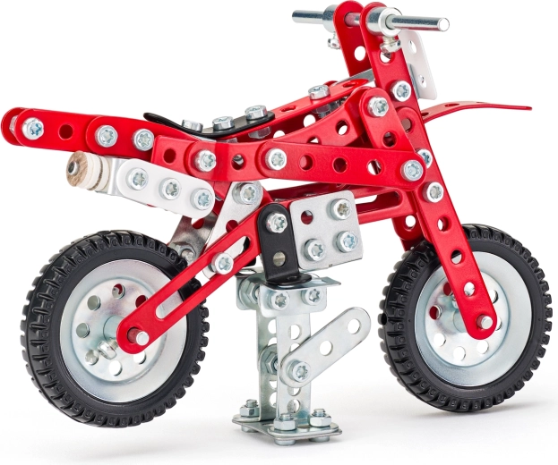 Zestaw konstrukcyjny Merkur Dirtbike to świetny wybór dla małych konstruktorów, którzy kochają technikę i tworzenie. Dzięki solidnym metalowym częściom i śrubkom powstaje atrakcyjny model motocykla typu dirtbike, który zachwyca wyglądem i stabilnością. Zestaw zaprojektowano tak, aby wspierał koordynację ręka–oko, cierpliwość i kreatywność.