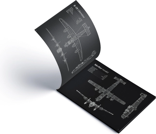 W opakowaniu znajduje się pięknie opracowana broszura z instrukcją i wciągającą historią, a także podpisany certyfikat z numerem seryjnym zestawu. Wybrana setka egzemplarzy dodatkowo zawiera limitowany, podpisany szkic MERKUR. Ze względu na wymagający montaż (level 5) model jest idealny dla cierpliwych konstruktorów oraz do wspólnego rodzinnego tworzenia.
