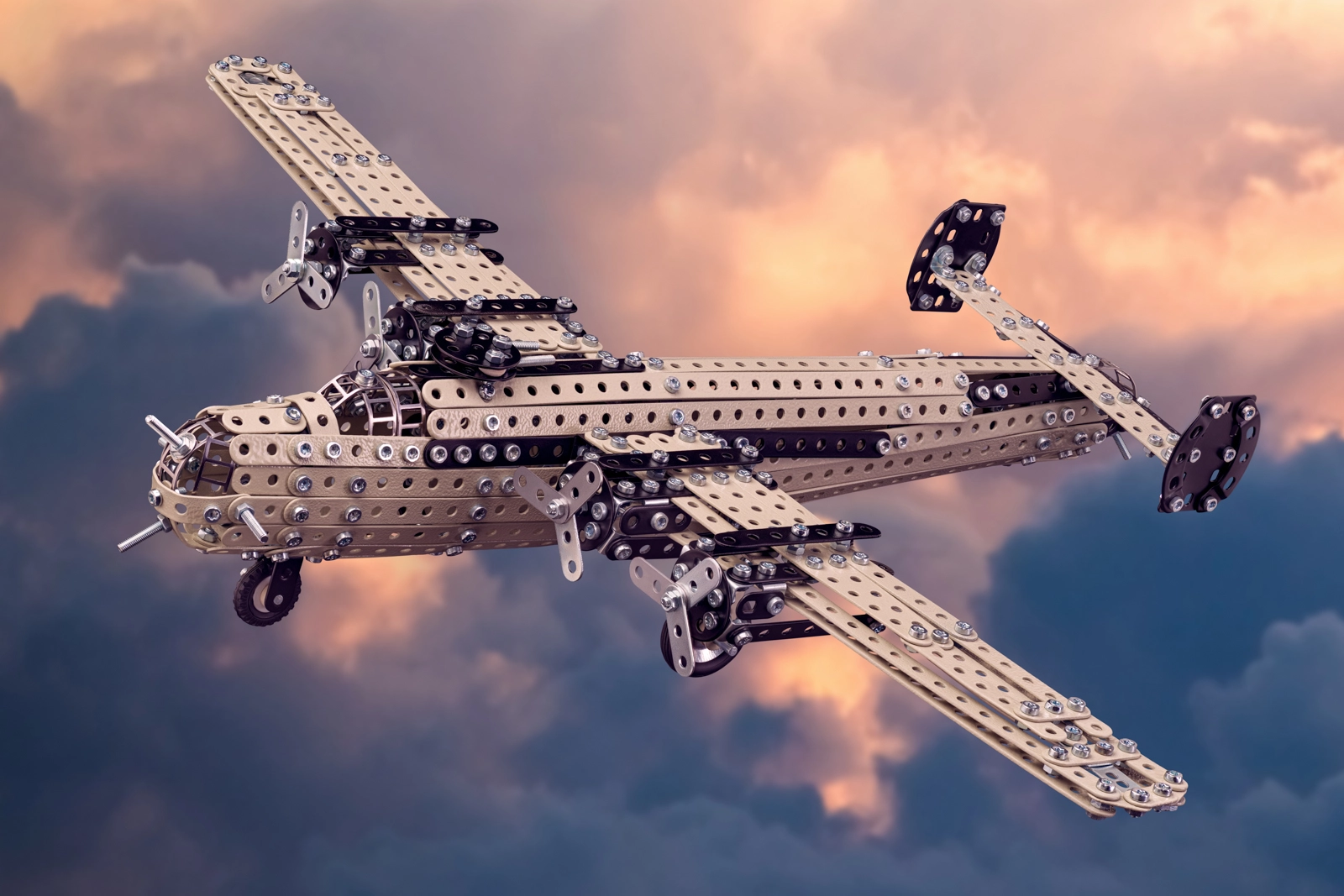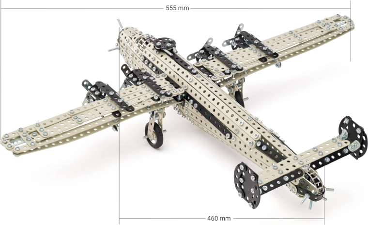 Świętuj 100 lat legendarnej konstrukcyjnej zabawki MERKUR limitowaną edycją modelu B-24 Liberator. Zestaw z 902 elementami oferuje imponujący model bombowca o rozpiętości skrzydeł 55,5 cm, wysokiej jakości metalowe komponenty, szczegółową broszurę z historią oraz certyfikat z numeracją. Poziom trudności level 5 ucieszy zapalonych konstruktorów od 8 lat (najlepiej z asystą osoby dorosłej).