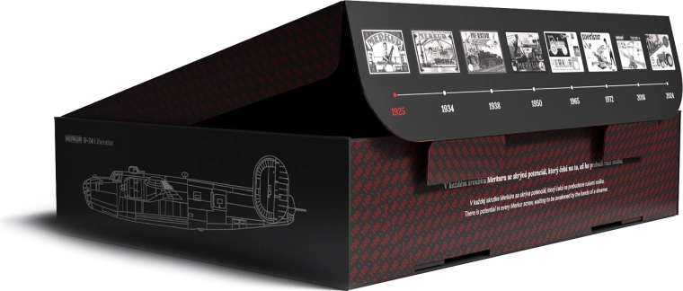 Ta ekskluzywna edycja MERKUR powstała na cześć czeskiego lotnika Františka Švejdara i została wyprodukowana w limitowanym nakładzie 2 500 sztuk. Metalowe perforowane części, śrubki i nakrętki zapewniają stabilność i długą żywotność, a gotowy model wiernie oddaje kultowy bombowiec B-24 Liberator z funkcjonalnymi detalami podwozia i śmigieł.
