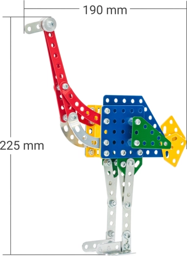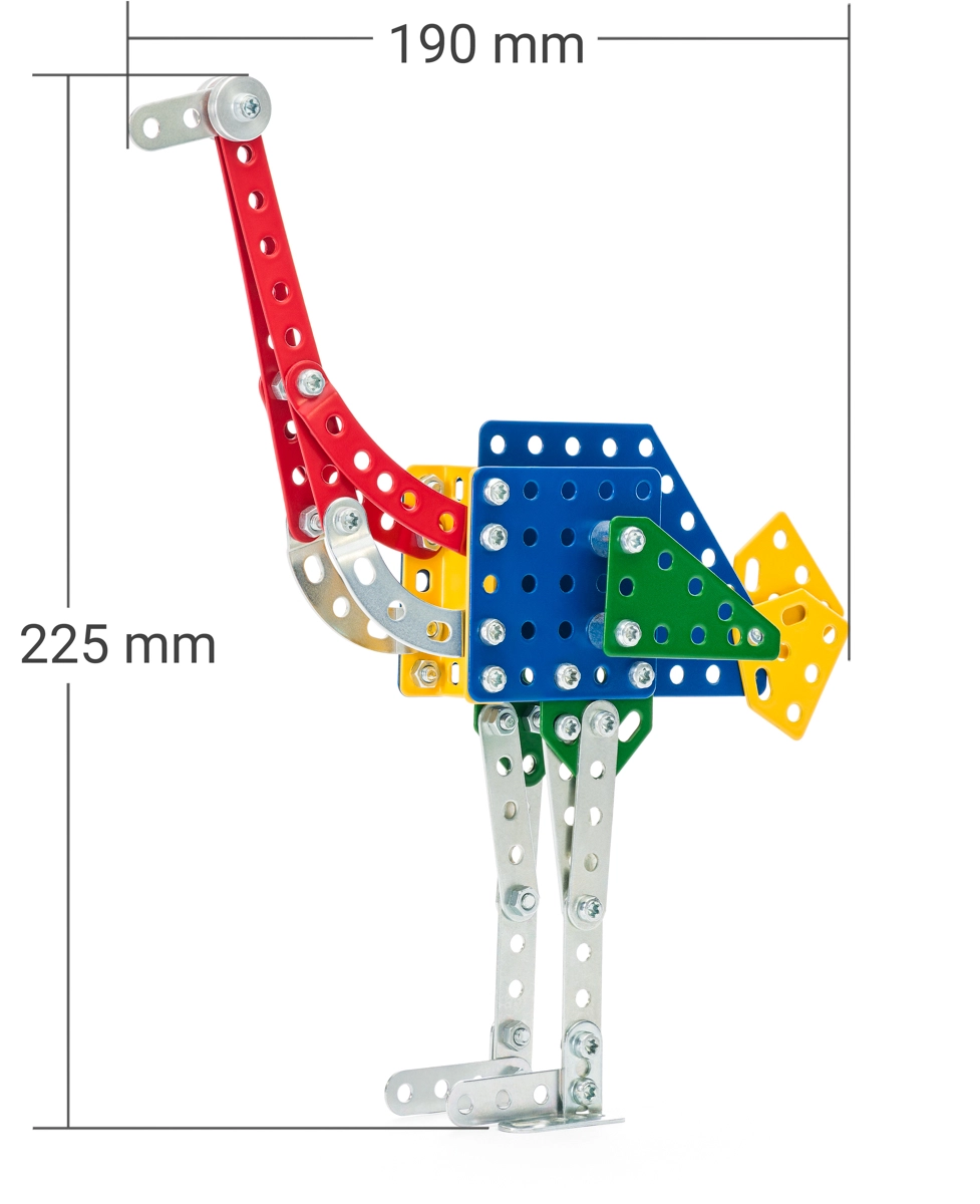 Zestaw MERKUR Zoo – struś to świetny wybór dla dzieci, które kochają technikę, zwierzęta i tworzenie. Wysokiej jakości metalowe części i solidne połączenia na śrubki zapewniają stabilność modelu oraz długą żywotność. Poziom trudności 3 oferuje angażujące wyzwanie i pobudza zręczność oraz wyobraźnię.