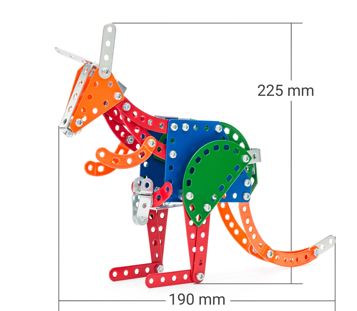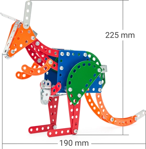 Ta metalowa konstrukcyjna zabawka MERKUR to idealny wybór dla małych techników od 5 roku życia. Dzięki przemyślanemu systemowi śrubek i nakrętek dzieci trenują zręczność i koncentrację, jednocześnie świetnie się bawiąc twórczo. Zestaw zawiera wszystko, co potrzebne do złożenia realistycznego modelu kangura.