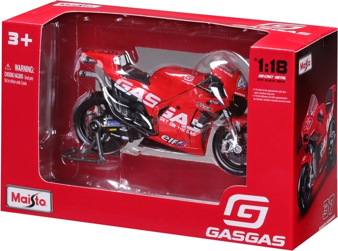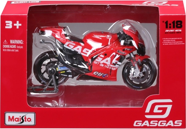 Ten oficjalnie licencjonowany model marki Maisto wiernie odwzorowuje wyścigową maszynę GASGAS Factory Racing Tech3 z 2023 roku. Wyróżnia się realistycznym wykonaniem owiewek, amortyzatorów i tarcz hamulcowych, co ucieszy kolekcjonerów i młodych miłośników motocykli.
