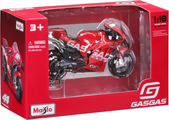 Szczegółowy kolekcjonerski model wyścigowego motocykla GASGAS Factory Racing Tech3 2023 w skali 1:18 z numerem 44 – Pol Espargaró. Metalowe nadwozie z plastikowymi elementami, swobodnie obracające się koła oraz stojak do ekspozycji. Oficjalnie licencjonowany produkt, wierne barwy i precyzyjne odwzorowanie detali.