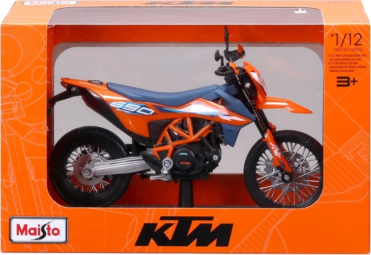 Ciesz się precyzyjnie wykonanym modelem KTM 690 SMC R (2023) w ikonicznym, pomarańczowo‑niebieskim malowaniu. Seria Special Edition Motorcycles oferuje realistyczne detale, metalowe elementy i autentyczne wykończenie, które zachwyci kolekcjonerów i młodych pasjonatów motocykli.