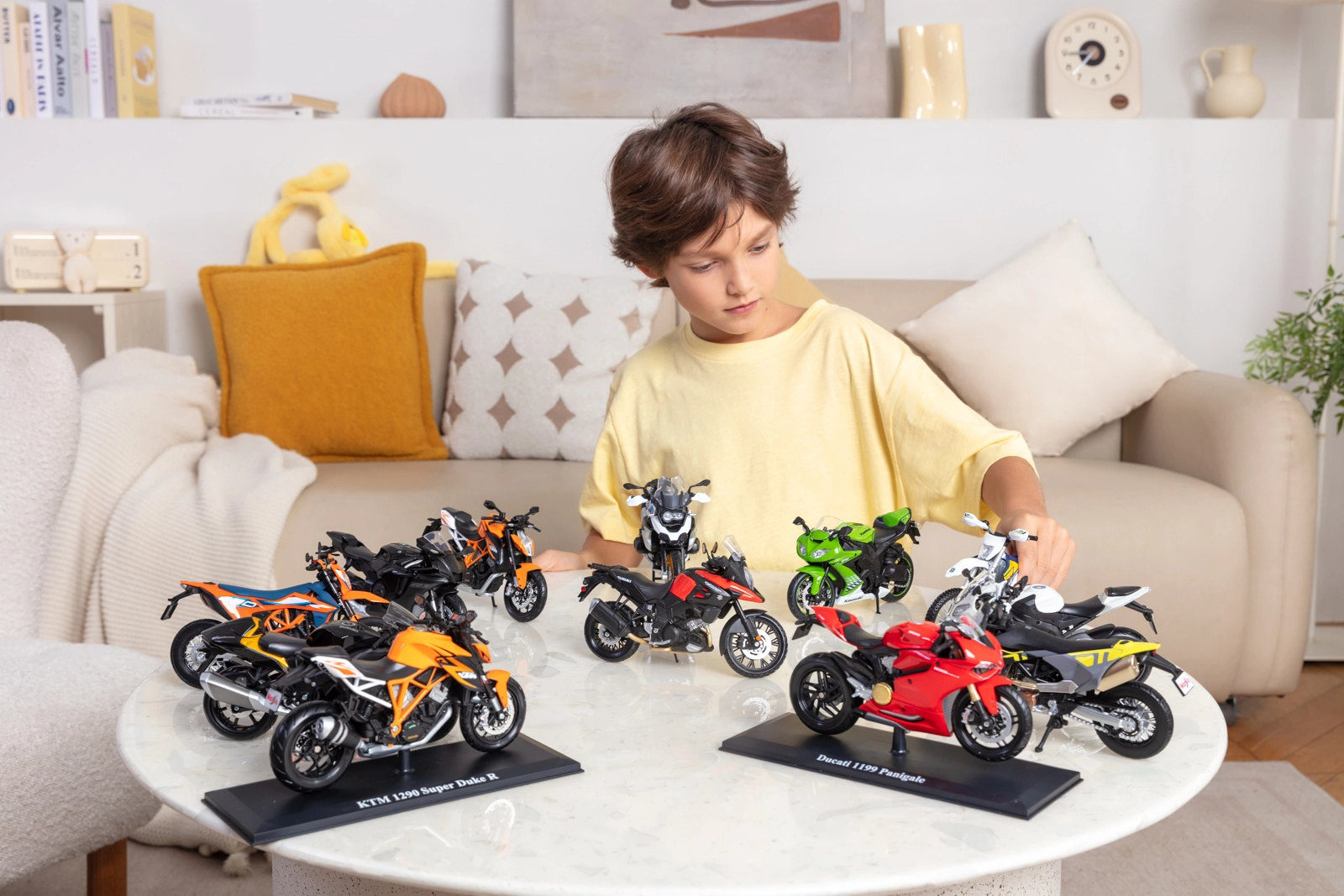 Metalowa rama z plastikowymi dodatkami, precyzyjne malowanie i wierne elementy – od szprych kół po tarcze hamulcowe – zapewniają autentyczny wygląd na półce i podczas zabawy.