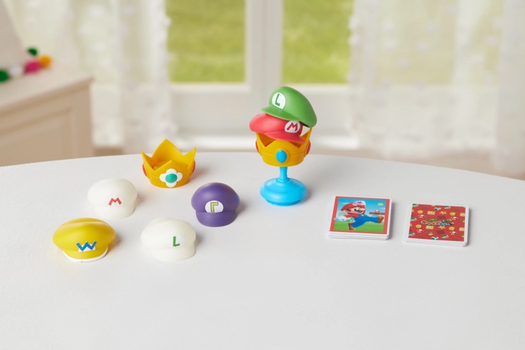 Super Mario Cap Stacker to wciągająca gra planszowa, która łączy ulubione postacie ze świata SUPER MARIO z emocjonującym zadaniem balansowania. Gracze kolejno umieszczają kapelusze na podstawie zgodnie z kartami – kto przewróci wieżę, przegrywa. Proste zasady, szybkie rundy i mnóstwo śmiechu dla całej rodziny.