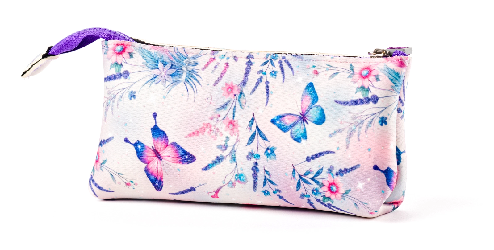 Stylowe etui w kwiaty i motyle zachwyci dzieci i dorosłych. Dzięki miękkiemu i elastycznemu neoprenowi bezpiecznie ochroni przybory do pisania, kosmetyki oraz drobną elektronikę. Duży zamek ułatwia codzienne użytkowanie i utrzymanie porządku w środku.