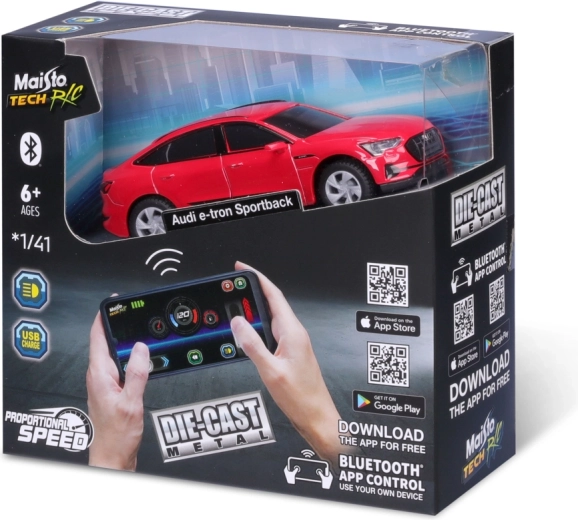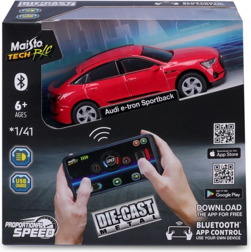 Odkryj zabawę nowej generacji z mini autem RC Maisto Audi e-tron Sportback w skali 1:41. Sterowanie przez Bluetooth i 2,4 GHz zapewnia płynną jazdę bez zakłóceń, światła LED dodają realizmu, a ładowany akumulator Li-ion przez USB‑C gwarantuje wygodę na co dzień. Idealny dla dzieci od 6 lat i kolekcjonerów.