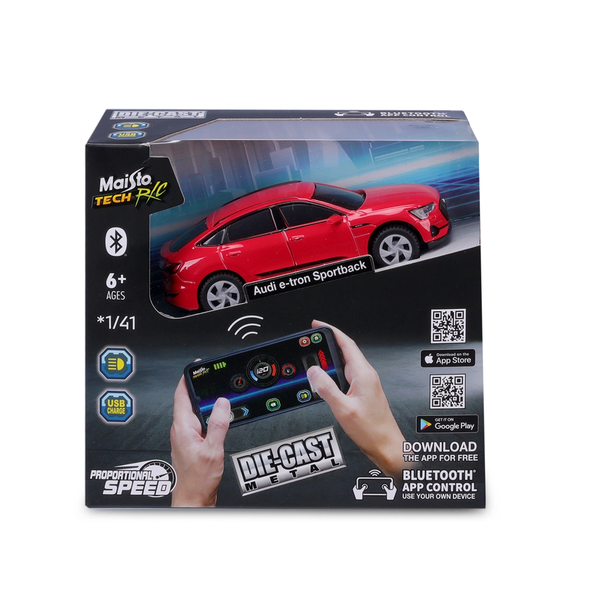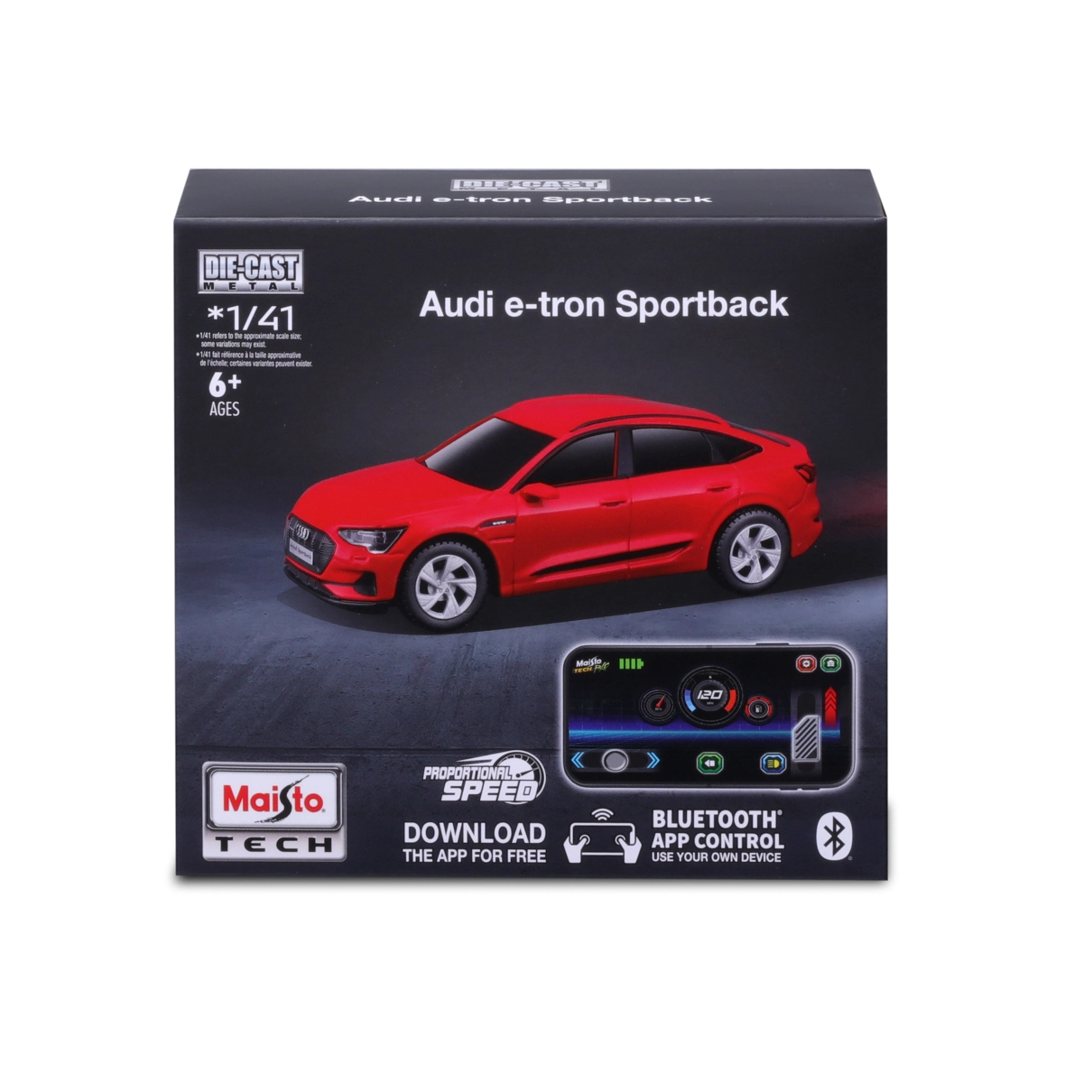 Miniaturowy, ale wydajny – ten metalowy model RC Audi e-tron Sportback łączy realistyczne wykonanie z nowoczesną technologią. Steruj autem wygodnie smartfonem przez Bluetooth 5.0 i korzystaj ze stabilnego zasięgu dzięki częstotliwości 2,4 GHz. Zintegrowane efekty świetlne podkreślają dynamiczny wygląd sportowego elektryka.