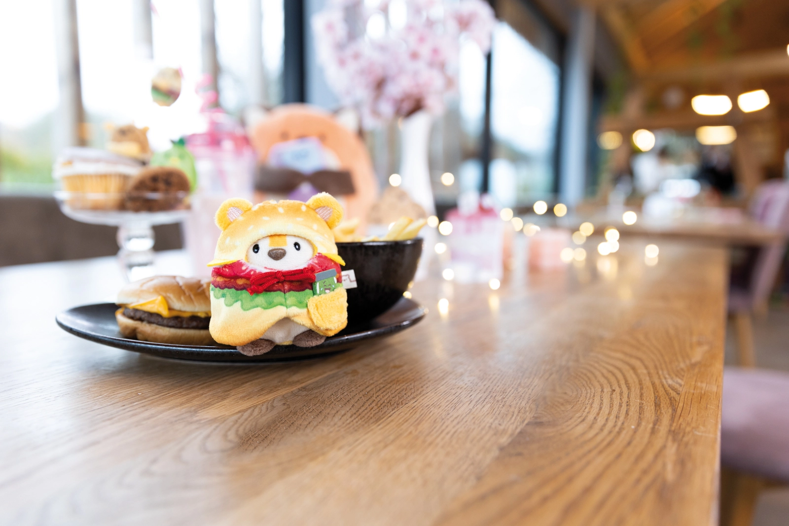 - Pluszowy tygrys Tiggy, kostium hamburgera, mini ogórek, pudełko prezentowe