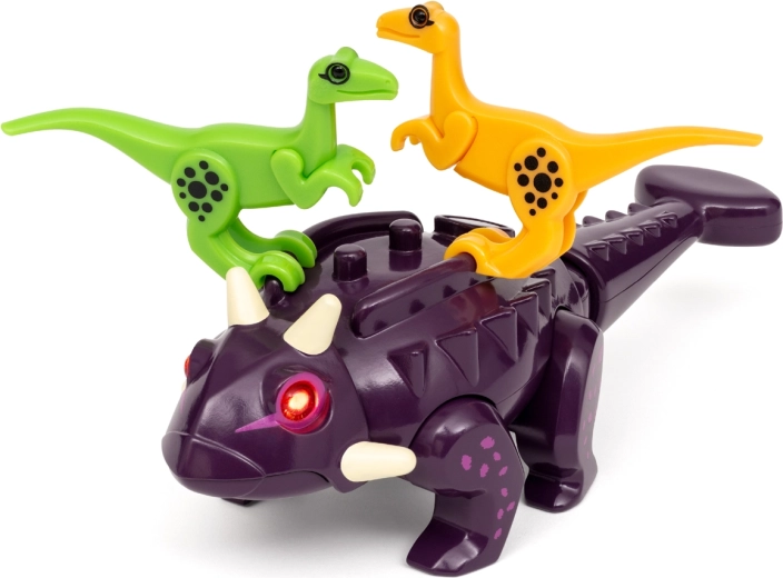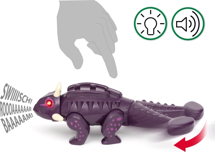 Ankylozaur ożywa dzięki czerwonym diodom LED w oczach i efektom dźwiękowym, które dziecko uruchamia ruchem. Dodaje to grze napięcia i realizmu.