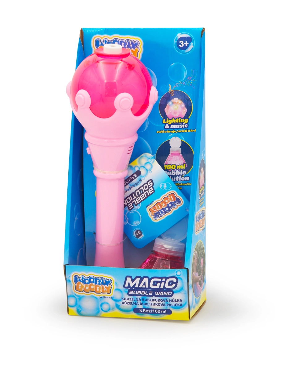 Weź magię w swoje ręce – różdżka WOOBLY BOOBLY po włączeniu natychmiast rozświetla się przezroczystymi barwami, odtwarza przyjemną melodię i wyczarowuje mnóstwo lśniących baniek. Dzięki prostemu sterowaniu i kompaktowym wymiarom sprawdzi się w ogrodzie, na urodzinowych przyjęciach i podczas wieczornych spacerów.