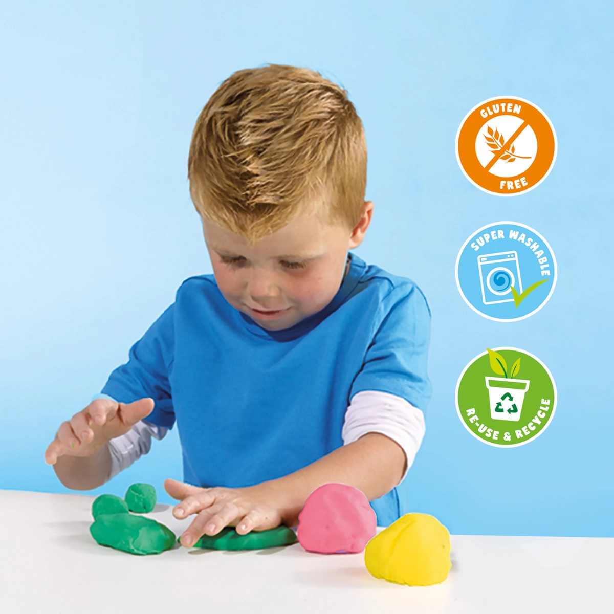 Zabawny i bezpieczny zestaw dla małych twórców: ECO plastelina z wysokiej jakości drewnianymi narzędziami. Zawiera trzy kolory plasteliny oraz bogate akcesoria do niekończącej się zabawy w tworzenie. Wyższy udział naturalnych surowców, recyklowany plastik w opakowaniach oraz skład bezglutenowy ucieszą rodziców i dzieci.