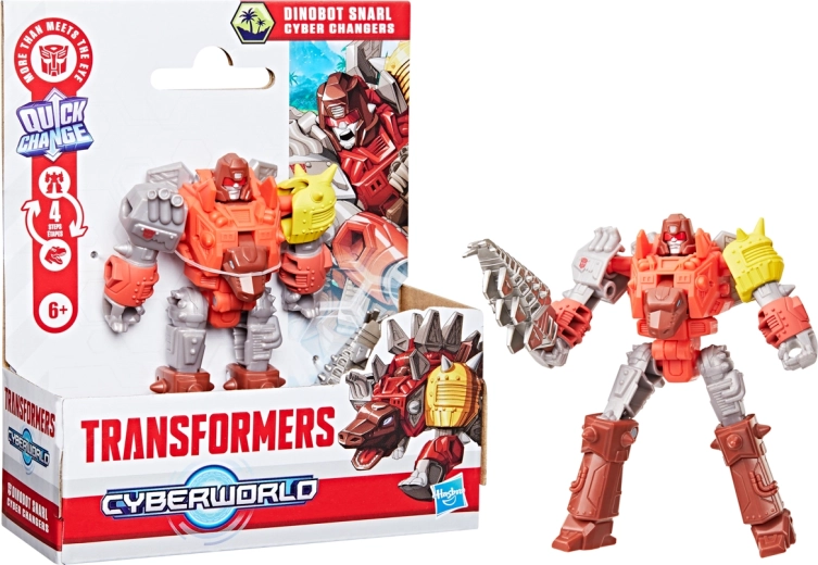Odkryj figurkę akcji Transformers dinobot Snarl z linii Cyber Changers, która łatwo zmienia się w 4 krokach z robota w dinozaura. Dzięki ruchomym stawom, kompaktowemu rozmiarowi ok. 10 cm i wytrzymałemu plastikowi jest idealna zarówno dla dziecięcej wyobraźni, jak i do kolekcjonerskich gablot.