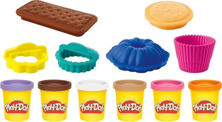 Zestaw Hasbro Play-Doh małe smakołyki – cukiernia oferuje wszystko, czego dzieci potrzebują do tworzenia słodkich wypieków bez okruszków i bałaganu. Dzięki barwnej palecie kolorów i praktycznym narzędziom mogą z łatwością „upiec” babeczki, ciasteczka czy inne przysmaki oraz rozwijać swoją wyobraźnię.