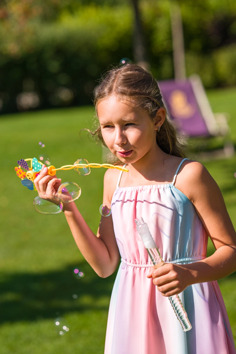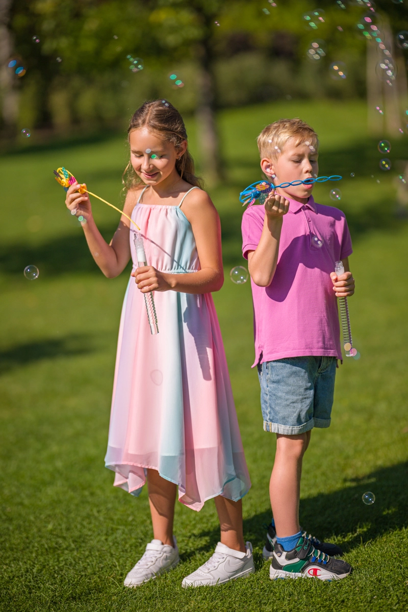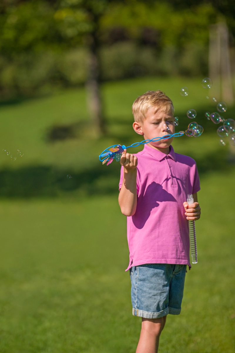 Bańki unoszą się w powietrzu, a wiatraczek kręci się podczas biegu lub na wietrze – efektowna kombinacja, która nie pozwoli dzieciom się nudzić.