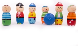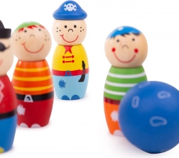 Wnieś do domu radosną atmosferę z naszym zestawem drewnianych kręgli w stylu piratów. Każdy kręgiel jest wyjątkowo zaprojektowany w wesołych kolorach z uśmiechniętymi buźkami, które przyciągają uwagę dzieci. Ta tradycyjna drewniana zabawka to świetny wybór zarówno do zabawy w domu, jak i na zewnątrz. Dzięki wysokiej jakości, odpowiedzialnie pozyskanym materiałom zabawa jest bezpieczna i trwała.