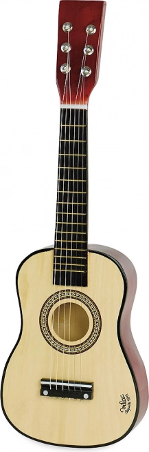 Dziecięca akustyczna gitara w naturalnym kolorze ucieszy małych muzyków drewnianym wykonaniem i sześcioma nylonowymi strunami. W zestawie znajduje się kostka i zapasowa struna. Idealna do pierwszych muzycznych prób i rozwoju poczucia rytmu. Wysoka jakość wykonania, bezpieczne nylonowe struny oraz akcesoria w zestawie dla łatwego startu.