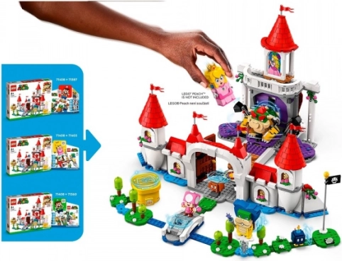Wejdź do królestwa PRINCESS PEACH z bogato dopracowanym modelem zamku, który rozszerzy twoje trasy LEGO Super Mario. Czeka na ciebie sala tronowa z obrotową ścianą, za którą ukrywa się Bowser, witraż z Peach, tajny obraz ze znacznikiem akcji oraz tort z Goombą. Nie brakuje specjalnej zamkowej rury, bloku czasu, lawowego mostu i miski z fioletowym owocem.