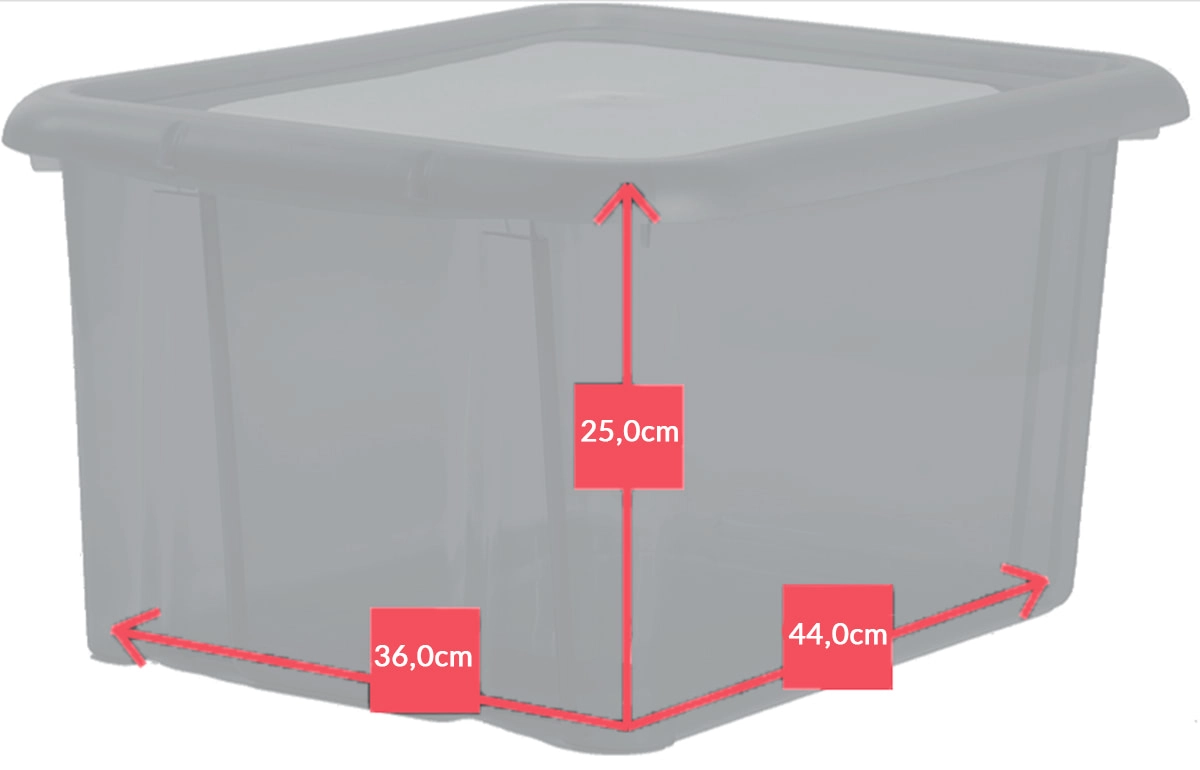 Praktyczny i wytrzymały pojemnik o pojemności 30 l z transparentnymi ściankami i ściśle przylegającą pokrywą utrzyma porządek w pokoju dziecięcym, sypialni i biurze. Dzięki przezroczystemu wykonaniu szybko znajdziesz to, czego szukasz, a możliwość sztaplowania oszczędza miejsce.