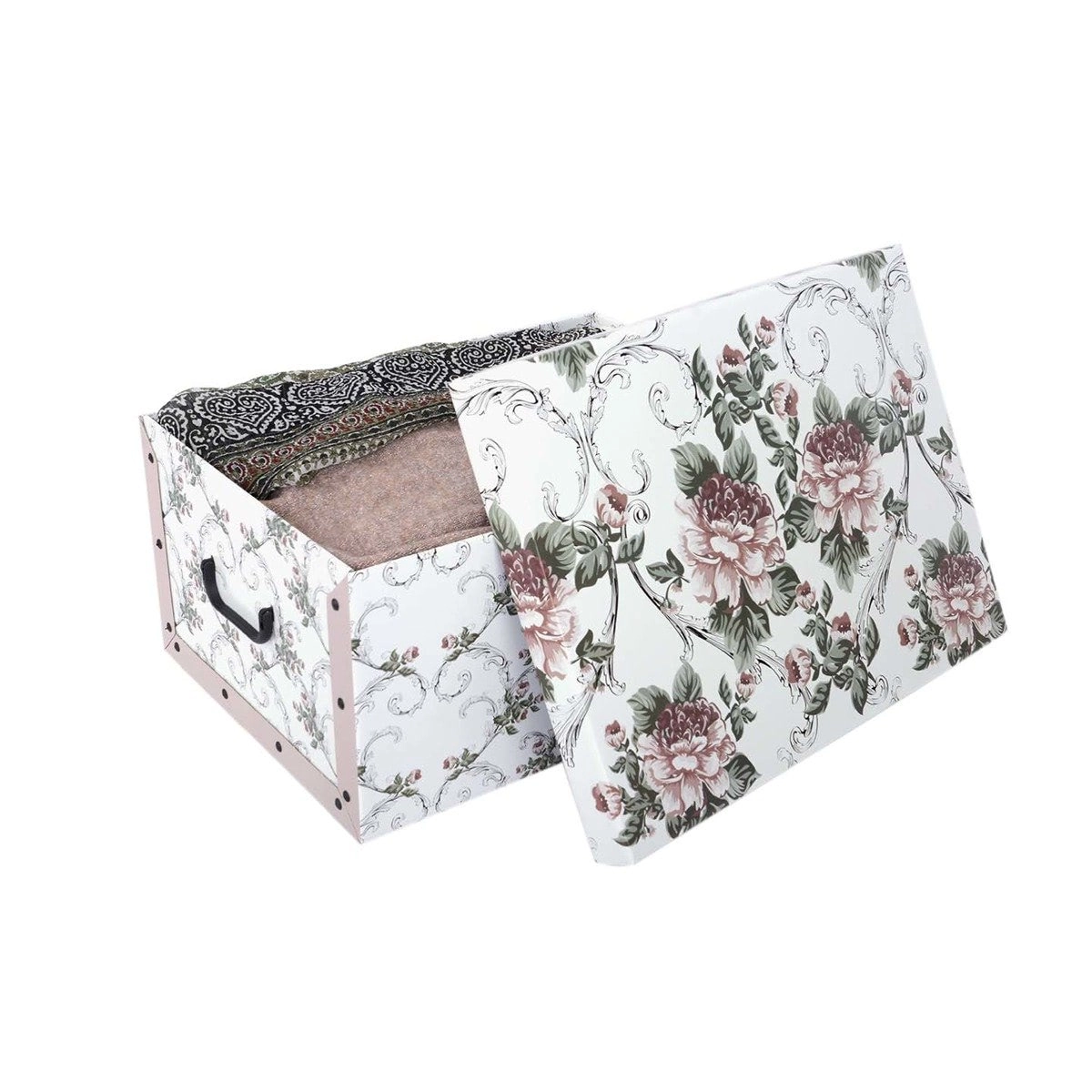 Szukasz pięknego i niezawodnego sposobu przechowywania ubrań, dokumentów czy akcesoriów? Pudełko MAXI w dekorze Barok Antik łączy ponadczasowy wygląd z praktycznymi detalami. Dzięki mocnej, kaszerowanej tekturowej konstrukcji zachowuje kształt, łatwo się składa i wygodnie przenosi dzięki zintegrowanym uchwytom.