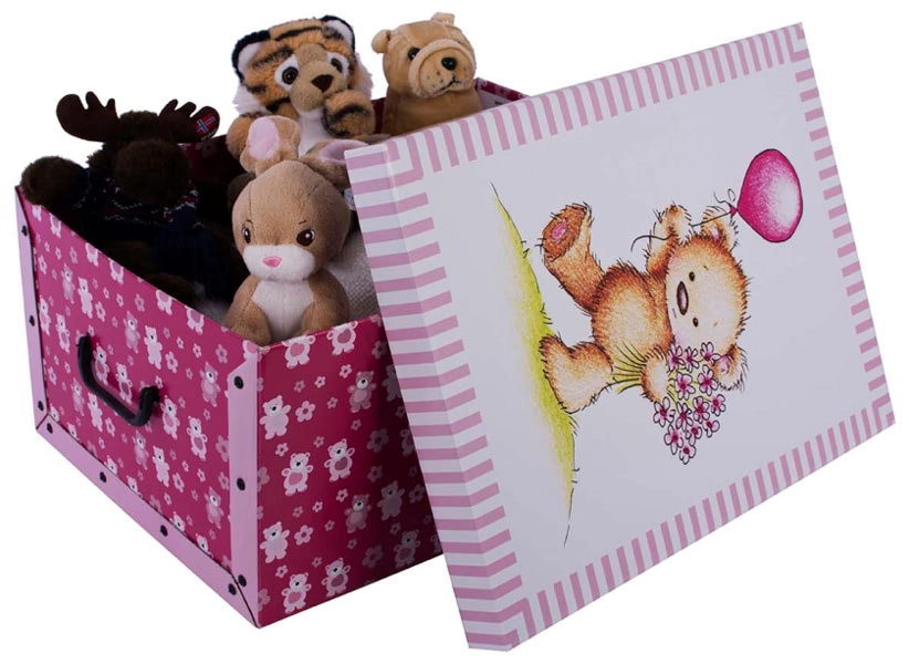 To pudło do przechowywania MAXI łączy funkcjonalność i atrakcyjny design. Wzór różowych misiów ociepla każde wnętrze, a solidna konstrukcja zapewnia długą żywotność. Dzięki praktycznym uchwytom pudło jest łatwe w przenoszeniu i złożysz je w kilka chwil bez użycia narzędzi.