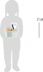 Solidna konstrukcja z wytrzymałej sklejki zapewnia długą żywotność i stabilność podczas zabawy. Neutralna kolorystyka wpasuje się w każdy dziecięcy pokoik i kącik zabaw. Imitacja przycisków z ikonami, liczbami i znakami wspiera wczesne oswajanie z symbolami i inspiruje do wymyślania własnych scenariuszy zabawy.