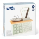 Stylowa drewniana waga dla małych sprzedawców i sprzedawczyń zapewnia realistyczne ważenie jak w sklepie. Dzięki mechanizmowi sprężynowemu i ruchomemu wskaźnikowi dzieci łatwo zrozumieją zasady pomiaru, rozwijają umiejętności liczenia oraz komunikację. Wytrzymałe wykonanie ze sklejki i uniwersalny design pasują do każdego dziecięcego sklepiku.