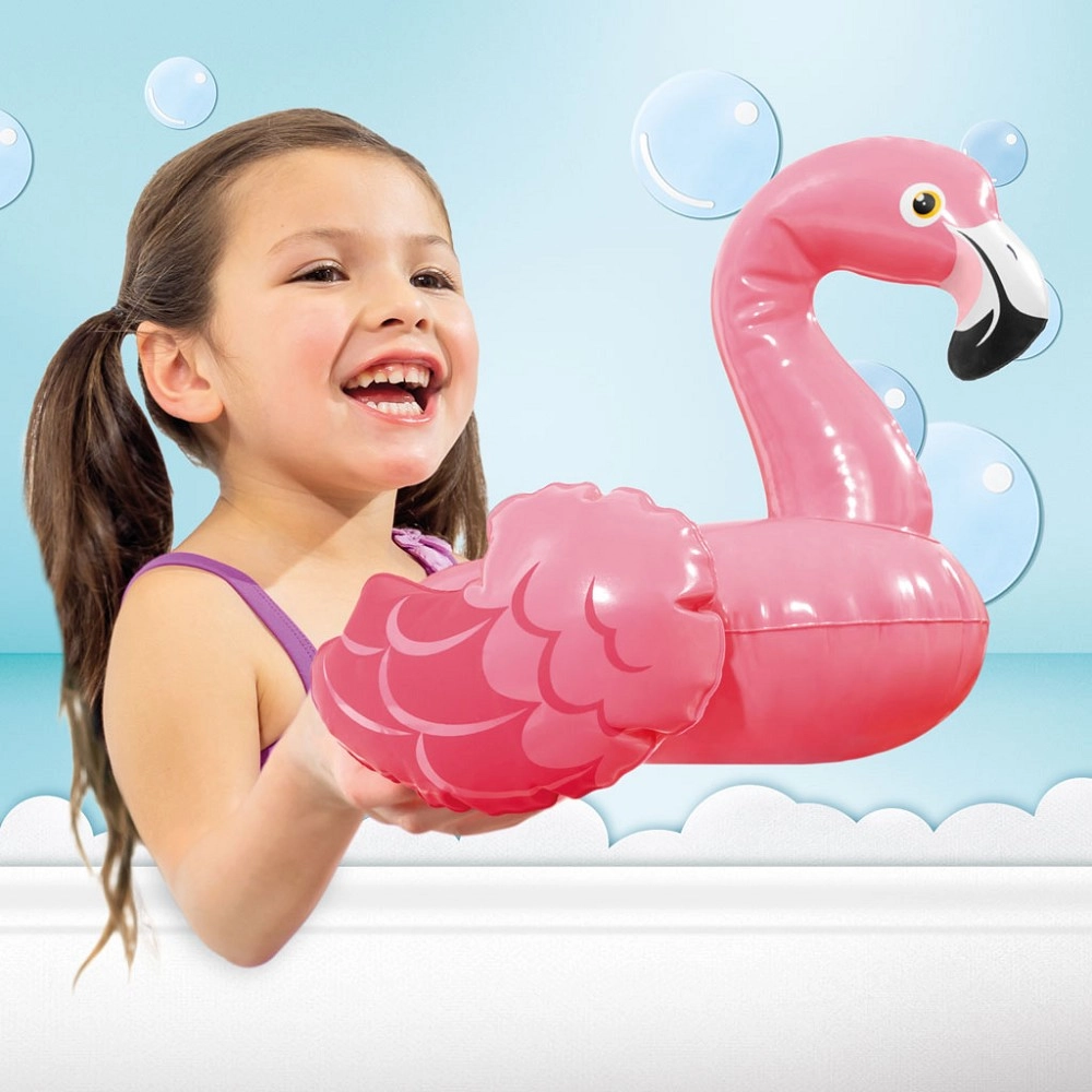Wesoły różowy flaming naturalnie motywuje dzieci do wodnych harców i pomaga przełamać nieśmiałość wobec wody.