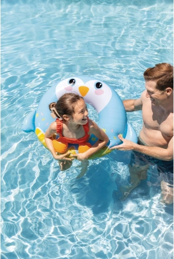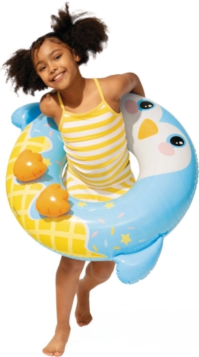Uroczy nadmuchiwany koło do wody pomoże dzieciom zyskać pewność i stabilność podczas pływania. Dzięki średnicy 76 cm, zaworowi bezpieczeństwa oraz nośności do 40 kg jest idealny do wodnych zabaw starszych dzieci. Zabawny zwierzęcy design przyciąga uwagę i motywuje do bezpiecznej aktywności w wodzie.