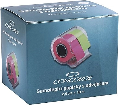 Praktyczne samoprzylepne karteczki w rolkach z dyspenserem w dwóch neonowych kolorach (różowy i zielony) do szybkich notatek i oznaczania. Każda rolka ma szerokość 2,5 cm i długość 10 m, tylna strona jest w całości klejąca na całej szerokości. Dzięki zintegrowanemu ostrzu łatwo oderwiesz dokładnie tak długi pasek, jakiego potrzebujesz. Świetnie trzymają się papieru i gładkich powierzchni.