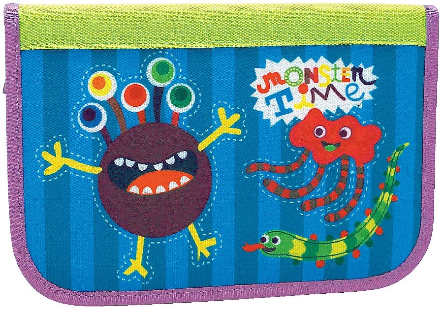 Praktyczny szkolny piórnik dla uczniów klas 1–3 oferuje jedną komorę z dwiema klapkami, wysokiej jakości zamek oraz wiele elastycznych uchwytów do przejrzystego przechowywania przyborów. Zachwyca nowoczesnym, kolorowym designem z motywami Miś, Dino, Potwór i zapewnia zamykana kieszonkę oraz przezroczyste przegródki na tygodniowy plan lekcji.