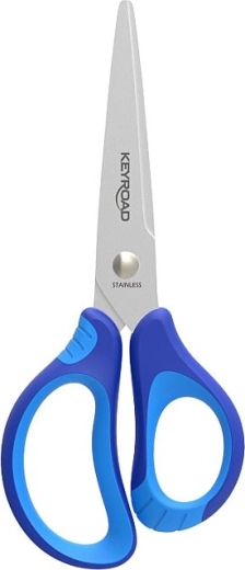 Nożyczki szkolne KEYROAD Soft 15 cm to idealny wybór dla uczniów i do domowego tworzenia. Dzięki zaokrąglonej końcówce zwiększają bezpieczeństwo podczas użytkowania, a miękki ergonomiczny uchwyt zapewnia wygodne trzymanie nawet przy dłuższej pracy.
