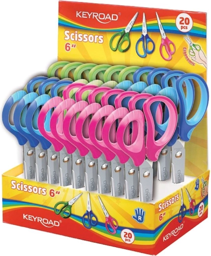 Praktyczne szkolne nożyczki z okrągłą końcówką i długością 15 cm do bezpiecznego i precyzyjnego cięcia. Oferują ergonomiczną i miękką rączkę dla wygodnego chwytu oraz wysokiej jakości stalowe ostrza dla gładkiego cięcia. Dostarczane w miksie 3 kolorów.