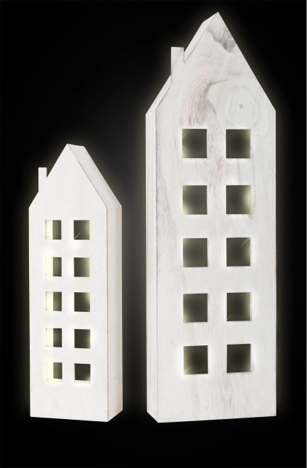 Mały domeczek ma wymiary 10x6x33 cm, a większy mierzy 14x6x47 cm. Otrzymujesz więc efektowną dekorację odpowiednią do każdego pomieszczenia.