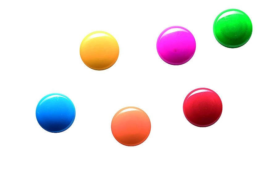 Zaokrąglone, błyszczące „guzikowe” wykonanie jest delikatne dla powierzchni i wygodne w dłoni. Magnesy są dobrze widoczne nawet z daleka.