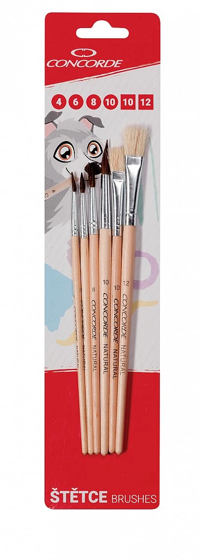 Uniwersalny zestaw pędzli CONCORDE do szkoły, hobby i warsztatu oferuje łącznie 6 sztuk – okrągłe pędzle z włosia nr 4, 6, 8, 10 oraz płaskie pędzle szczecinowe nr 10, 12. Dzięki naturalnym włóknom i drewnianej lakierowanej rączce wygodnie leżą w dłoni i zapewniają precyzyjną pracę oraz długą żywotność. Opakowanie w praktycznym blistrze ułatwia przechowywanie.