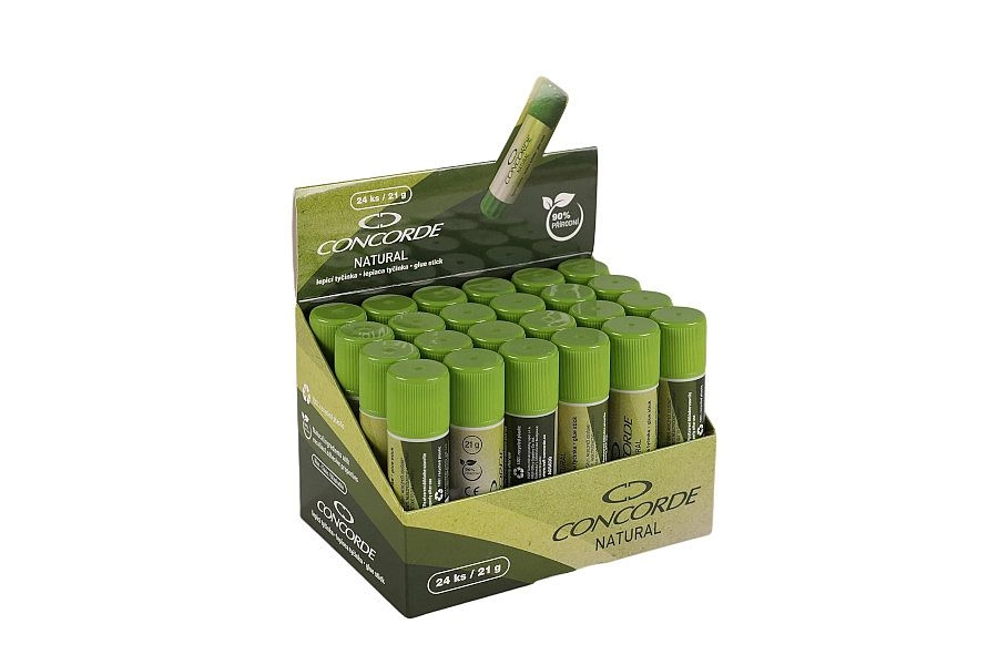 Klej w sztyfcie CONCORDE Natural 21 g jest przyjazny dla środowiska, a jednocześnie niezawodny w codziennym użytkowaniu. Dzięki naturalnemu składowi z 90% kukurydzianej skrobi zapewnia czyste i precyzyjne klejenie papieru, bez zapachu i plam. Opakowanie wykonano w 100% z plastiku z recyklingu, co zmniejsza ślad ekologiczny.