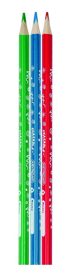 Wysokiej jakości szkolne kredki KEYROAD o trójkątnym ergonomicznym kształcie dla wygodnego trzymania i prawidłowego chwytu. Zestaw 12 intensywnych i żywych kolorów z wytrzymałym rdzeniem 3 mm zapewnia płynne krycie bez łamania. Drewniany, lakierowany korpus jest przyjemny w dotyku, a na każdej kredce znajduje się wolne miejsce na wpisanie imienia. Dostarczane w praktycznym, papierowym pudełku.