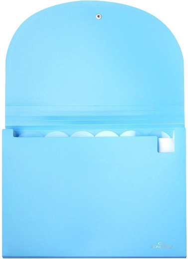 Utrzymaj porządek w dokumentach dzięki lekkiej i solidnej teczce z indeksem i siedmioma sekcjami. Pastelowy niebieski kolor wygląda profesjonalnie i nowocześnie, pasuje do biura, szkoły i domu. Zamknięcie na elastyczną gumkę przez guzik niezawodnie chroni zawartość podczas przenoszenia.