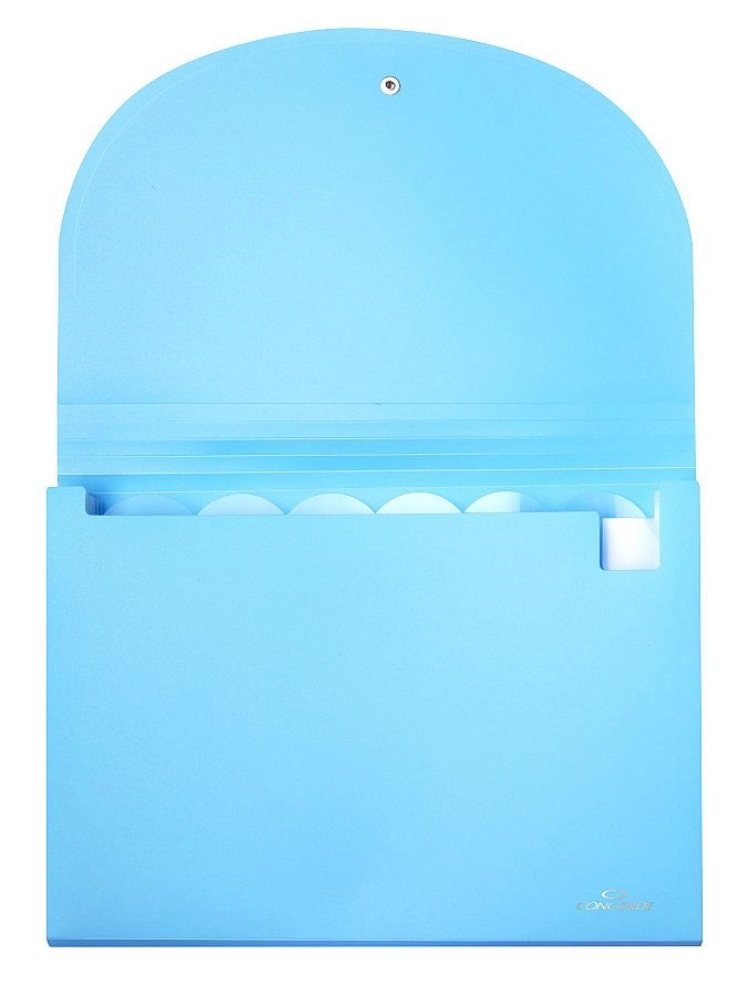 Praktyczna i elegancka teczka na dokumenty w formacie A4 z indeksem i 7 kieszeniami utrzyma Twoje materiały w przejrzystym porządku. Wytrzymały polipropylen w pastelowym niebieskim kolorze, zamknięcie na elastyczną gumkę oraz samoprzylepne etykiety do łatwej identyfikacji zawartości.