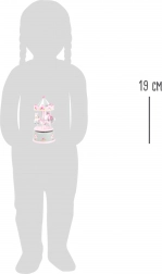 Ta klasyczna drewniana pozytywka w pastelowym różu, z misternie zdobioną karuzelą i konikami, ucieszy małych i dużych. Po nakręceniu metalowego mechanizmu karuzela płynnie się obraca, a pozytywka odtwarza delikatną melodię, która wprowadza spokojną atmosferę przed zaśnięciem.