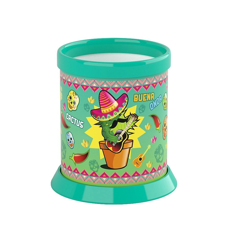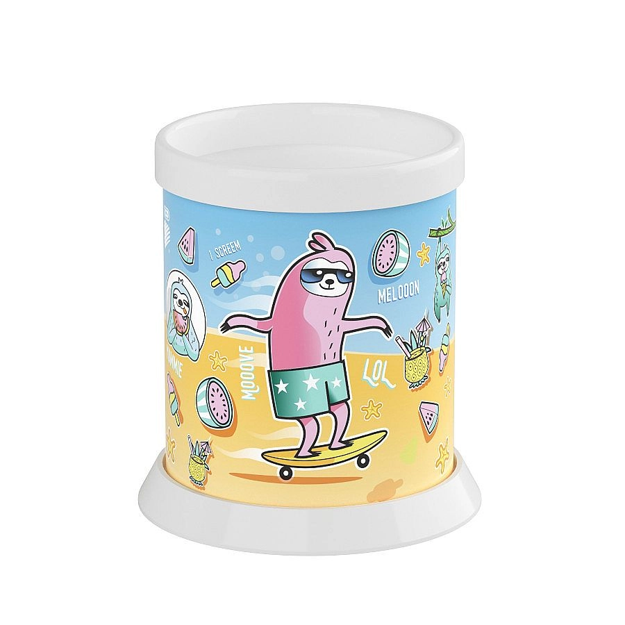 Stojak ma kompaktowe wymiary (Ø 70 mm, wysokość 95 mm), dzięki czemu zmieści się na każdym biurku, półce lub w pokoju dziecięcym. Gładka powierzchnia łatwo się czyści i konserwuje, co jest idealne do codziennego użytku w biurze i w domu. Motywy kolorystyczne mogą się różnić w zależności od aktualnej dostawy.