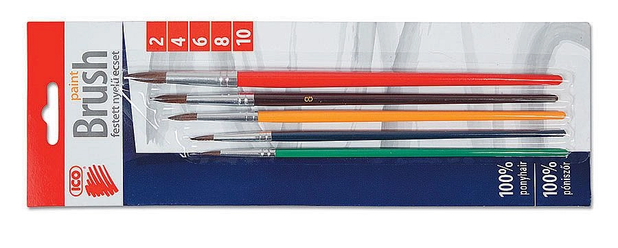 Praktyczny zestaw 5 okrągłych pędzli ICO w rozmiarach 2–10 jest idealny do szkolnych zajęć plastycznych i tworzenia w domu. Oferuje delikatne włosie dla płynnych pociągnięć, okrągłe końcówki do pracy w detalach i równomiernego nakładania farby oraz drewniane rączki lakierowane w kolorze dla wygodnego chwytu. Dostarczany na blistrze dla przejrzystego przechowywania.